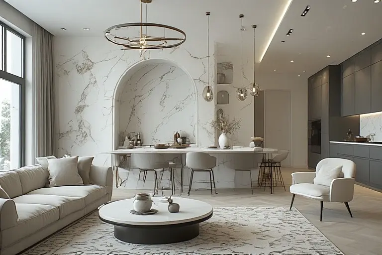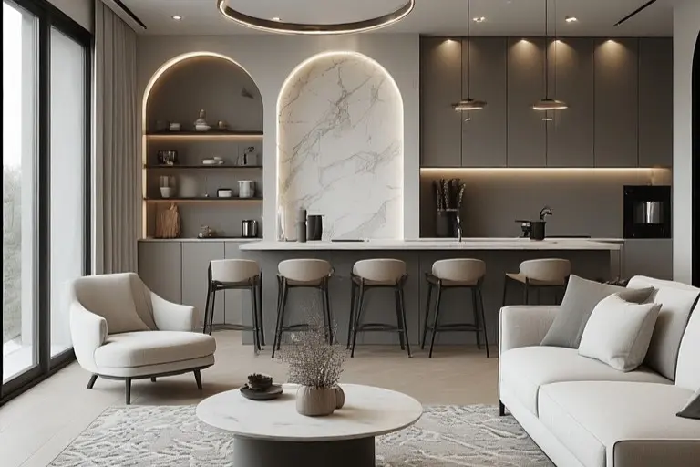من عاشق اتاق نشیمن مدرن جدیدم هستم! خطوط تمیز، تُنهای خنثی و فضای داخلی مینیمالیستی، فضایی آرامشبخش و شیک ایجاد میکند. خدمات طراحی داخلی مدرن آنها را اکیداً توصیه میکنم!